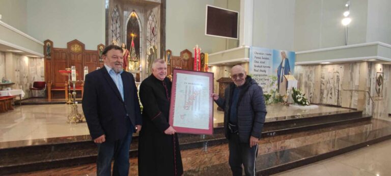 W sobotę, 11 maja br., na zaproszenie księdza prałata Tadeusza Pajurka pojechaliśmy do Lublina. Nie były to zwykłe odwiedziny. Mieliśmy przekazać do tworzącej się Izby Pamięci przy kościele pod wezwaniem Sanktuarium Świętej Rodziny, bardzo ważną dla byłych więźniów Hrubieszowa pamiątkę. A mianowicie – fragment prześcieradła więziennego z podpisami więźniów politycznych, którzy spędzili czas za kratami…